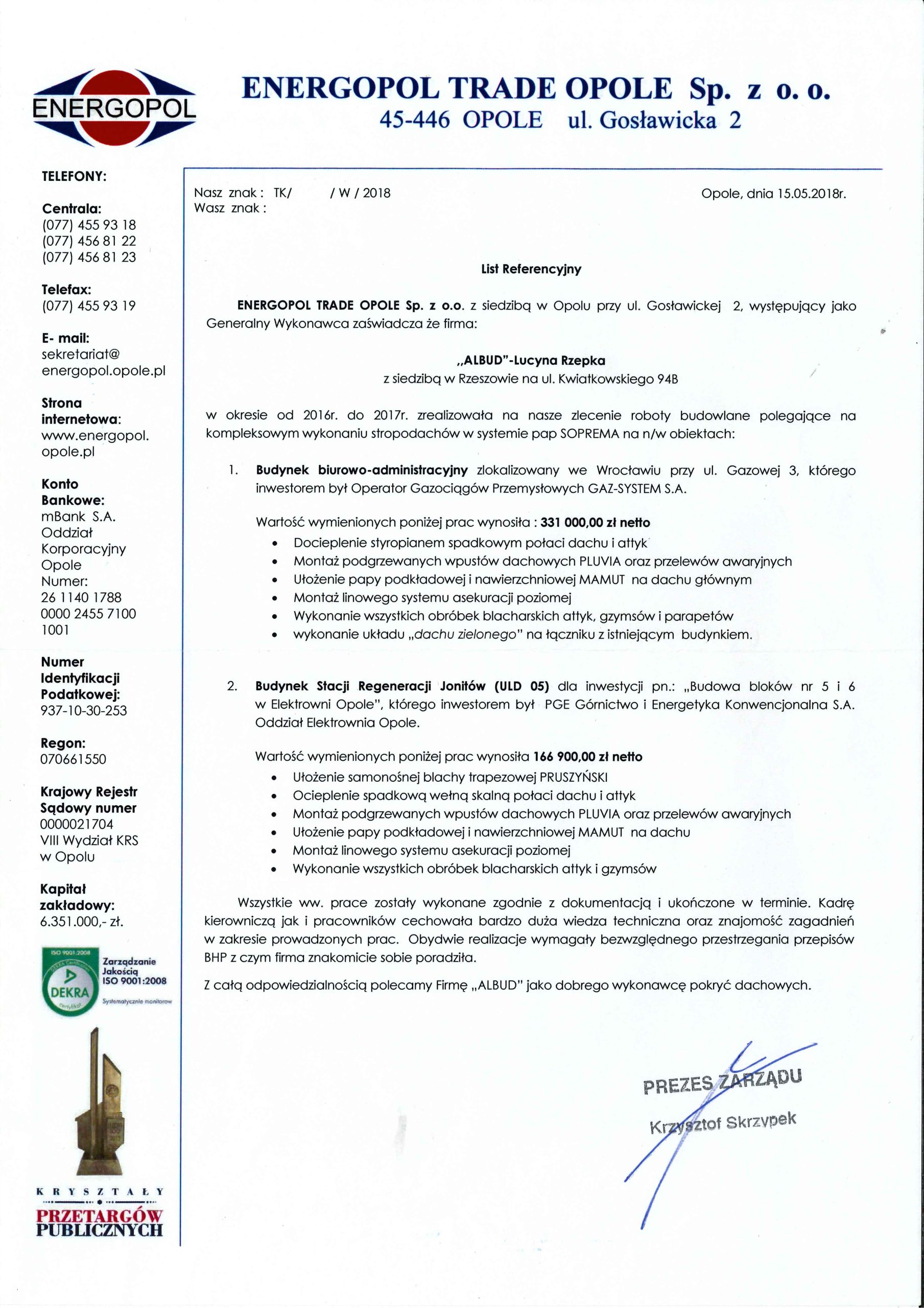 Z dumą prezentujemy opinie klientów, którzy zaufali nam i skorzystali z naszych usług. Ich zadowolenie jest najlepszym dowodem na naszą jakość, profesjonalizm i zaangażowanie.